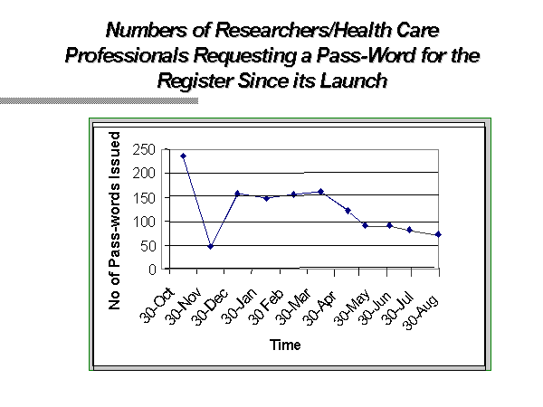 Fig. 2 Numbers of researchers/health care professionals requesting a pass-word for the register since its launch