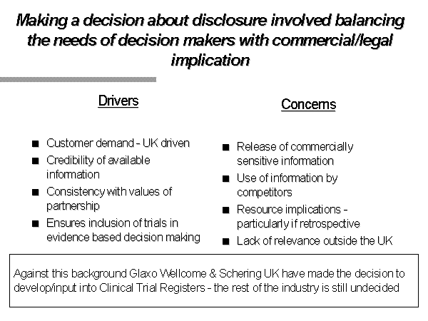 Table 1 Making a decision about disclosure involved balancing the needs of decision makers with commercial/legal implication